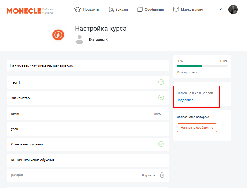 Как только учени наберет необходимое кол-во баллов для той или иной награды - продукт или курс появлятся у него в лк